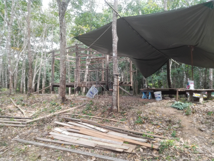 รื้อขนำเก่าในสวนใหญ่ เพราะว่าสภาพขนำในสวนใหญ่ เห็นแล้วน่าจะไม่ไหวแล้ว เพราะปลวกกินมาก แต่ยังโชคดีที่สร้างจากไม้ต้นหยีในส่วนที่สำคัญหรือที่เป็นโครงสร้าง มันเลยไม่พังลงมา แต่คิดว่าน่าจะต้องถึงเวลารื้อเพื่อสร้างใหม่